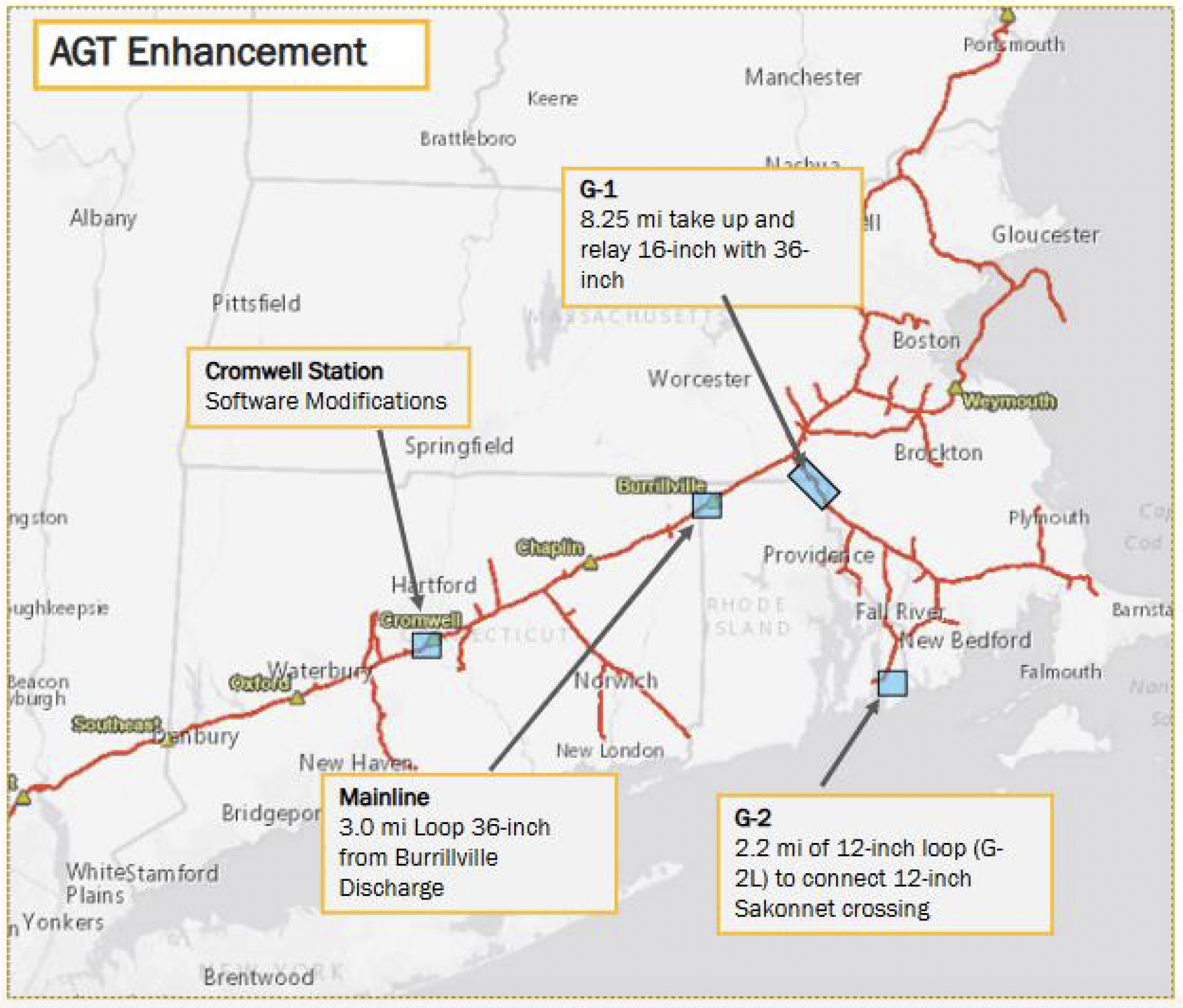 – “G-2” : In Tiverton and Little Compton RI they will add 12” looping pipeline to connect with their recent Sakonnet River Replacement expansion project.
