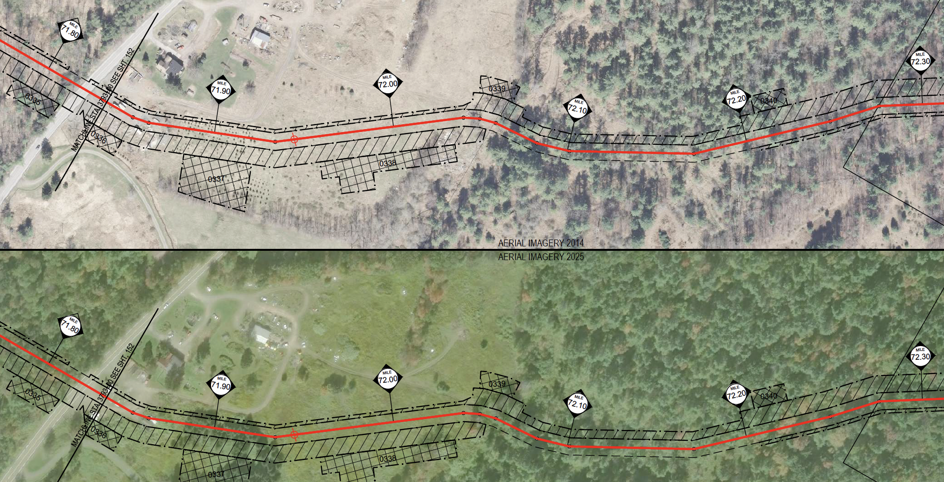 Attachment which G (15 documents) has aerial imagery comparisons between 2014 and 2025